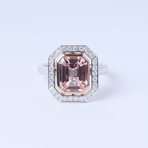 Crafted with a ravishing emerald-cut morganite center stone and encircled with a dazzling diamond halo, the Como Ring is a timeless symbol of refined luxury. Perfectly balanced and artfully designed, its beauty is sure to endure.